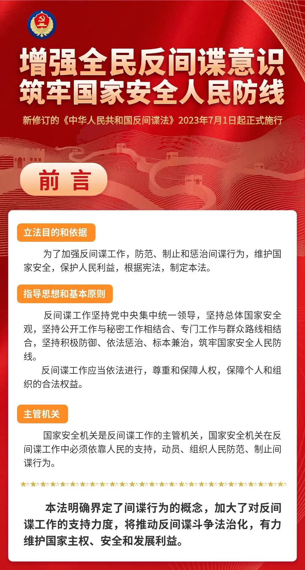 國(guó)家安全事關(guān)我們每一個(gè)人 維護(hù)國(guó)家安全,立即行動(dòng) 說(shuō)起間諜你知道多少? 對(duì)于《反間諜法》又了解多少? 今天就一起來(lái)學(xué)習(xí)一下吧